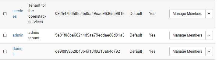 You can see the created project(tenant)