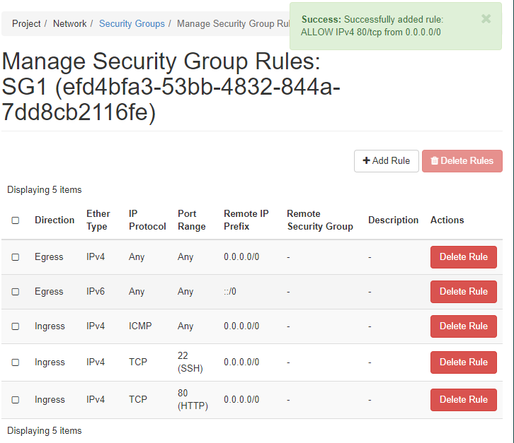I opened ICMP, SSH, HTTP for VMs managed by this Security Group