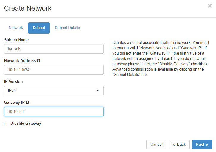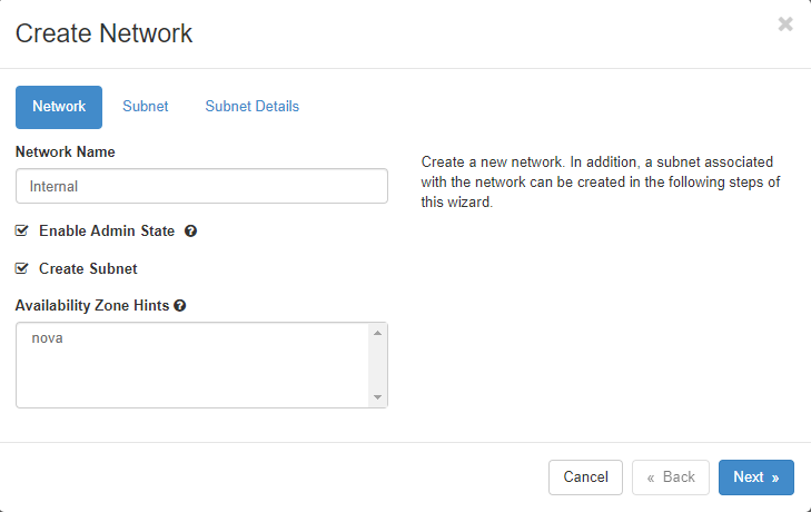 We are going to create the tenant (internal) network. We already created one tenant and user for the tenant.