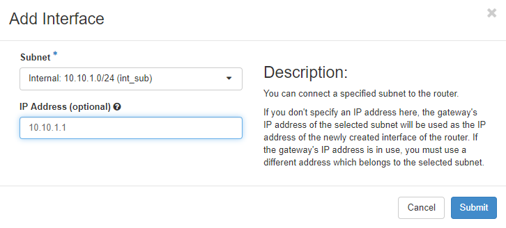 Project > Network > Routers > R1 > Interfaces > Add Interface