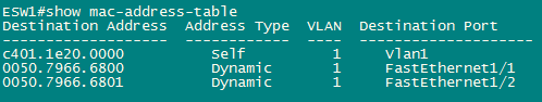 3. SW1 has no configuration at all but just interfaces for PCs are ‘no shutdown’