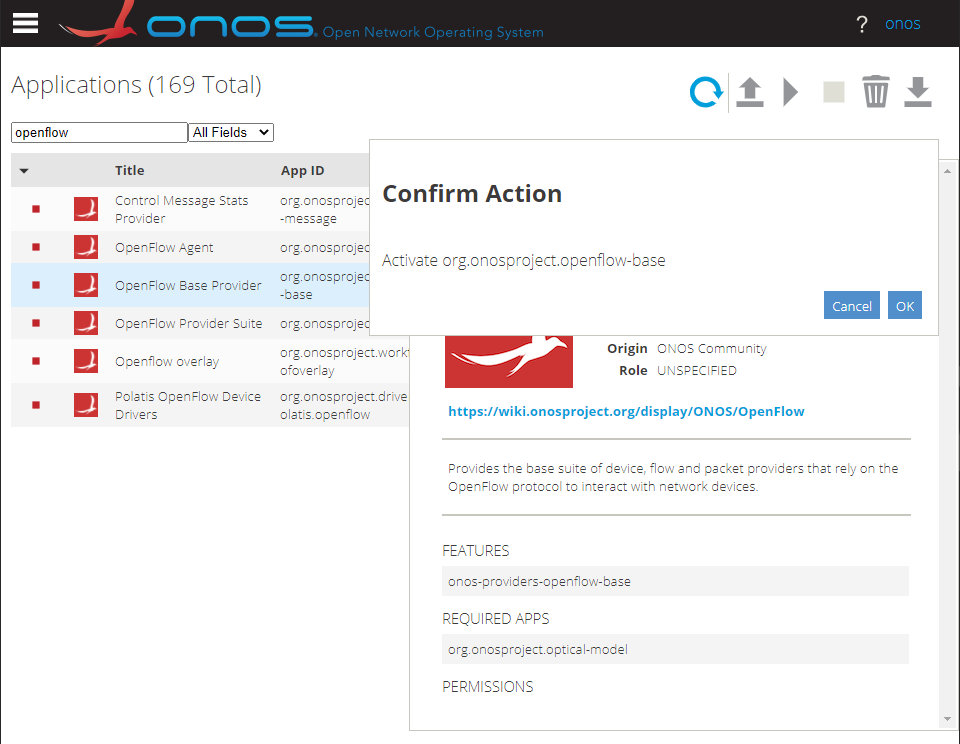 OpenFlow Agent, Reactive Forwarding (this is a switch), Host Location Provider, LLDP(to see topology).